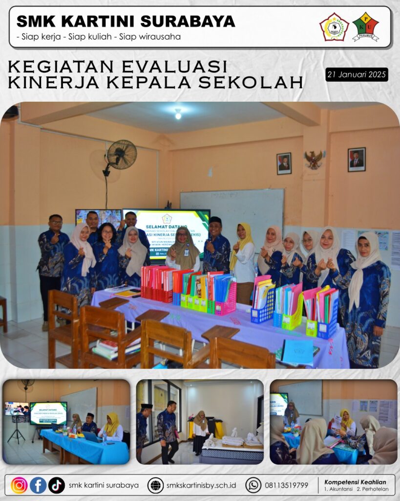 SMK Kartini Surabaya melaksanakan kegiatan Evaluasi Kinerja Kepala Sekolah (EKKS) pada 21 Januari 2025 sebagai bagian dari upaya peningkatan mutu manajemen dan layanan pendidikan. Kegiatan ini menjadi momen penting untuk menilai kinerja kepemimpinan sekolah sekaligus memastikan program yang dijalankan berjalan sesuai dengan standar dan visi pendidikan.